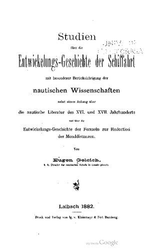 خرید و دانلود نسخه کامل کتاب Studien über die Entwickelungs- Geschichte der Schiffahrt mit besonderer Berücksichtigung der nautischen Wissenschaften nebst einem Anhang über die nautische Literatur des XVI. und XVII. Jahrhunderts und über die Entwickelungs-Geschichte der Formeln zur Reduction der Monddistanzen