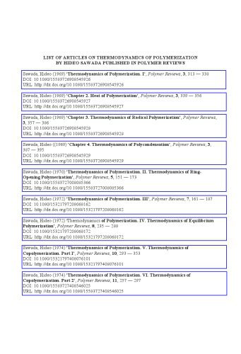 | عنوان اصلی | Thermodynamics of Polymerization – articles by Hideo Sawada in Polymer Reviews |