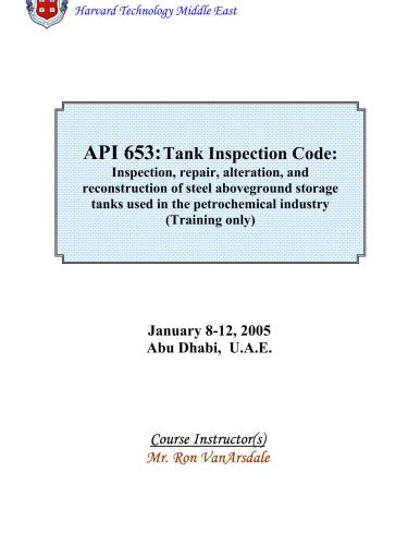 عنوان اصلی | Training course for API 653. Harvard Technology Middle East |