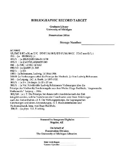 | عنوان اصلی | Vorlesungen ueber die Principien der Mechanik, Theil 1 |