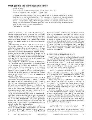 مکانیک آماری برای سیستمهای بزرگ کاربرد دارد: از نظر فنی، نتایج آن فقط برای سیستمهای بینهایت بزرگ در «حد ترمودینامیکی» دقیق است. اهمیت این شرط اغلب در دوره های کارشناسی به حداقل می رسد. این مقاله شش پارادوکس را در مکانیک آماری ارائه میکند که تنها با تأیید حد ترمودینامیکی قابل حل هستند. برای مثال، نشان میدهد که «محدودیت فضای فاز نازک» میکروکانونیکی پرکاربرد باید پس از گرفتن حد ترمودینامیکی گرفته شود.