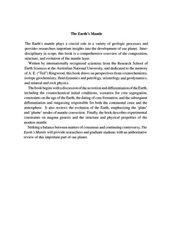 گوشته زمین که در حوزه بین رشتهای است، یک مرور کلی از ترکیب، ساختار و تکامل لایه گوشته است که تعادلی بین اجماع ثابت شده و بحثهای مداوم برقرار میکند. این کتاب که توسط دانشمندان شناخته شده بین المللی نوشته شده است، بررسی معتبری از این بخش مهم سیاره ما ارائه می دهد.