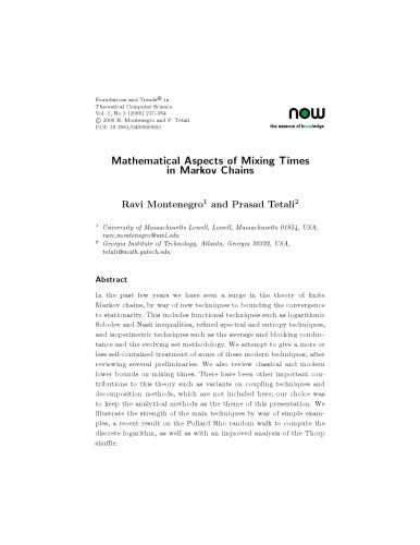 | عنوان اصلی | Mathematical Aspects of Mixing Times in Markov Chains (Foundations and Trends in Theoretical Computer Science) |