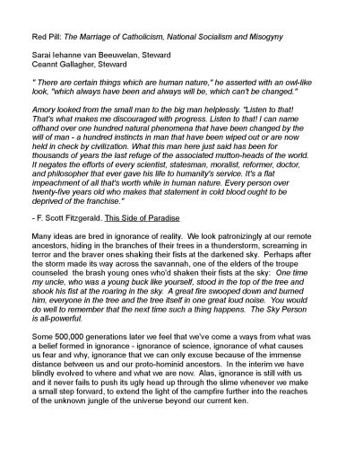 یک مرد همجنس گرا و یک زن مستقیم، شرکای روی ویدلر، مشاور جامعه Outlands، به چرایی و جهنم بودن گروه های مختلف آزادیبخش مردان مصنوعی، به ویژه پسران قرص قرمز می پردازند – و آنها پسر هستند، مسلماً مردان نیستند، MGTOW تهوع تبلیغات گروهی