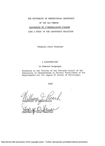 نسخه خطی دانشگاه پنسیلوانیا Blancandin et l’Orgueilleuse d’amour فرانسوی قدیم با مطالعه روابط نسخ خطی |