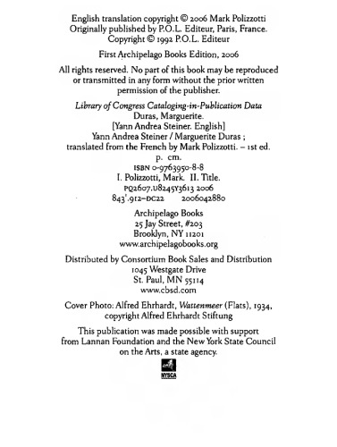 یان آندره اشتاینر که به همراه دوراس که آخرین دهه زندگی خود را با او گذرانده است، تقدیم شده است. راوی بین یک مشاور اردوگاه و یک اردوگاه یتیم، یک بازمانده از هولوکاست که شاهد قتل خواهرش به دست یک سرباز آلمانی بود. زمانی که تابستان 1980 به سال 1944 سرازیر می شود، خاطره در میل محو می شود. مرثیه ای مرموز از تاریخ، خلقت، و احساسات خام.