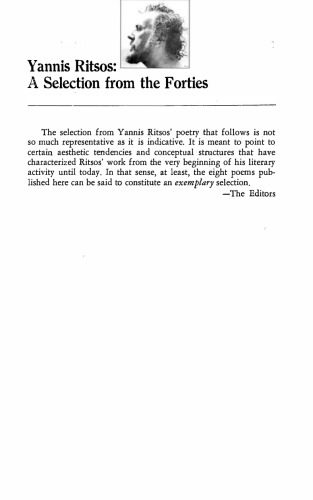 | عنوان اصلی | Yannis Ritsos: A Selection from the Forties |