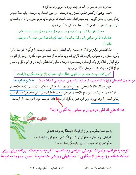 پاسخ فعالیت کلاسی در یازدهم پیام های آسمانی نهم