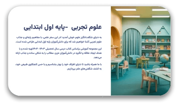 آیا آماده‌اید تا آموزش علوم برای کودکان را به تجربه‌ای شگفت‌انگیز و مؤثر تبدیل کنید؟ این قالب قدرتمند با طراحی حرفه‌ای، دقیق‌ترین محتوای آموزشی و قابلیت استفاده در تمام محیط‌های تدریس، یکی از بهترین گزینه‌های آموزشی حال حاضر است.