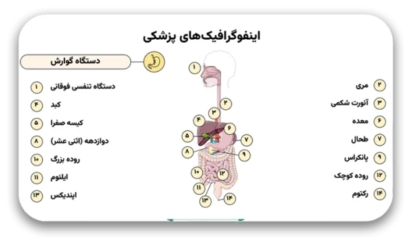 اسلایدهای موجود در قالب پاورپوینت اینفوگرافیک پزشکی: تشریح سیستمهای بدن با دقت بالا