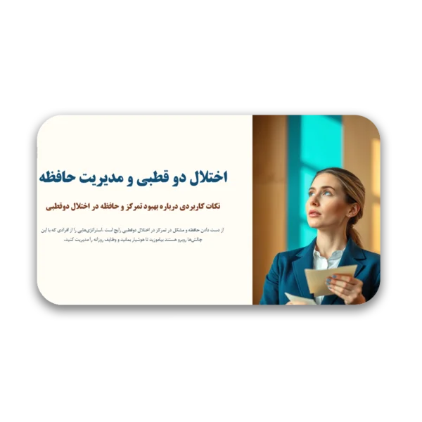 اختلال دوقطبی یکی از چالش‌های پیچیده روانی است که بسیاری از افراد با آن دست‌وپنجه نرم می‌کنند. این اختلال می‌تواند تأثیرات مخربی بر حافظه و تمرکز فرد داشته باشد. برای کمک به این افراد و آگاهی‌رسانی درباره راهکارهای مدیریت این مشکلات، قالب پاورپوینت “مدیریت حافظه و تمرکز در اختلال دوقطبی” به گونه‌ای طراحی شده که تمامی جنبه‌های مهم این موضوع را پوشش می‌دهد.