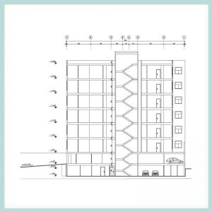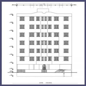 این نقشه معماری فوق العاده زیبا ،شامل ۶ طبقه مسکونی روی یک طبقه پیلوت و یک طبقه زیرزمین یباشد. از سمت جنوب گذر داشته و ملک شمالی میباشد. بصورت ۶طبقه مسکونی مستقل ۲ واحدی طراحی گردیده است. در این طرح از کلیه فضاها استفاده بهینه گردیده و دارای طراحی انعطاف پذیر میباشد که بسادگی با تغییرات تیغه داخلی نقشه نیز تغییر میکند ، زیرا ستون مزاحم ندارد. طراحی بر پایه اسکلت فلزی میباشد. در پیلوت ۲۳ واحد پارکینگ و در زیرزمین منفی یک ۱۳ عدد پارکینگ و استخر و سونا و تعدادی انباری طراحی شده است .