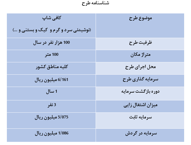 توجه داشته باشید این طرح توجیهی کاملا عملی شده و برای کافی شاپ در استان زنجان در بهار 1404 ساخته شده است