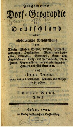 | عنوان اصلی | Allgemeine Dorf-Geographie von Deutschland oder alphabetische Beschreibung der Dörfer, Flecken, Stifte, … |