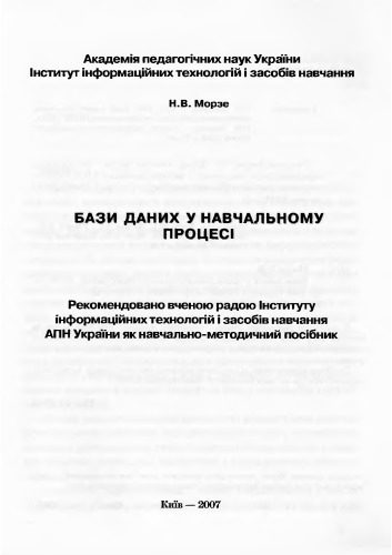 عنوان اصلیБази даних у навчальному процесі. Навчально-методичний посібник