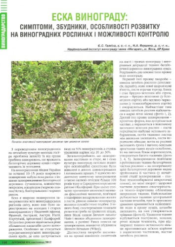 عنوان اصلی | Еска винограду: симптоми, збудники, особливості розвитку на виноградних рослинах і можливості контролю |