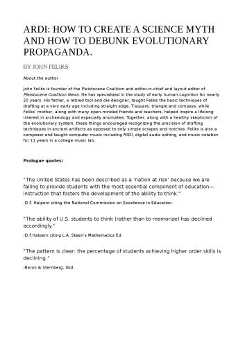 | عنوان اصلی | ARDI: HOW TO CREATE A SCIENCE MYTH AND HOW TO DEBUNK EVOLUTIONARY PROPAGANDA |