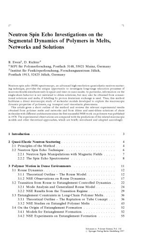 ویسکوالاستیک و ویژگی های حمل و نقل پلیمرها در حالت مایع (محلول، مذاب) یا مایع مانند (لاستیک) فرآیند و کاربرد آنها را تا حد زیادی تعیین می کند و از اهمیت فیزیکی اساسی برخوردار است [1-3]. بنابراین درک این خواص دینامیکی در سطح مولکولی از اهمیت بالایی برخوردار است. با این حال، این درک با این واقعیت پیچیده است که فرآیندهای هیجانی ممکن است در مقیاس های طول متفاوت رخ دهند و اینکه دینامیک توسط خواص زنجیره جهانی و همچنین ساختار شیمیایی ویژه واحدهای مونومر کنترل می شود [4،5]. اولین و ساده ترین رویکرد در این جهت از معادلات لانگوین با راه حل هایی که طیفی از حالت های آرامش را در بر می گیرند شروع می شود [1-4]. ویژگی‌های ویژه عبارتند از ادغام نیروهای آنتروپیک (مدل Rouse، [6]) که موجب کاهش آنتروپی کاهش می‌شوند و برهم‌کنش‌های هیدرودینامیکی (مدل Zimm، [7]) که حرکات قطعه‌ای را از طریق لایه‌های پشتی دوربرد در محلول‌های پلیمری جفت می‌کنند. و گنجاندن محدودیت‌ها یا درهم‌تنیدگی‌های توپولوژیکی (مدل reptation یا لوله، [8-10]) که متقابلاً در یک مجموعه متراکم از زنجیره‌ها تحمیل می‌شوند. رویکرد دیگر، نادیده گرفتن جزئیات ساختار شیمیایی و تمرکز بر روی عناصر جهانی آرامش زنجیره، مبتنی بر ملاحظات پوسته‌گذاری دینامیکی است[4،11]. به ویژه در محلول‌های پلیمری، این رویکرد ابزاری ظریف برای مشخص کردن روندهای کلی دینامیک پلیمرها است، اگرچه مولفه‌های زیادی از کمبود وجود دارد. تفسیر یک آزمون واقعی از این رویکردهای نظری نیازمند روش‌های میکروسکوپی است که به طور همزمان به تکامل مکانی و زمانی تقسیم قطعه‌ای دسترسی مستقیم می‌دهد. در اینجا، روش‌های پراکندگی شبه الاستیک نقش مهمی ایفا می‌کنند زیرا امکان اندازه‌گیری توابع همبستگی مربوطه را فراهم می‌کنند. به ویژه، طیف‌سنجی نوترون اسپینکو (NSE) با وضوح بالا [12-15] برای چنین تحقیقاتی بسیار مناسب است زیرا این روش محدوده زمانی مناسبی را پوشش می‌دهد (0.005/0) 40) و فضا (r/nm [15). علاوه بر این، امکان علامت گذاری توسط تبادل هیدروژن-دوتریوم امکان مشاهده رفتار تک زنجیره ای حتی در مذاب را فراهم می کند.