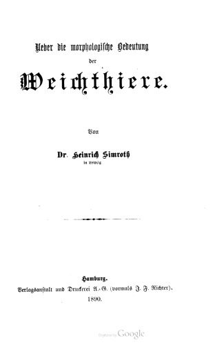 خرید و دانلود نسخه کامل کتاب Über die morphologische Bedeutung der Weichtiere