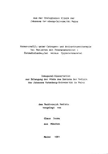 خرید و دانلود نسخه کامل کتاب Hormonprofile unter Östrogen- und Antiandrogentherapie bei Patienten mit Prostatakarzinom : Östradiolundecylat versus Cyproteronacetat