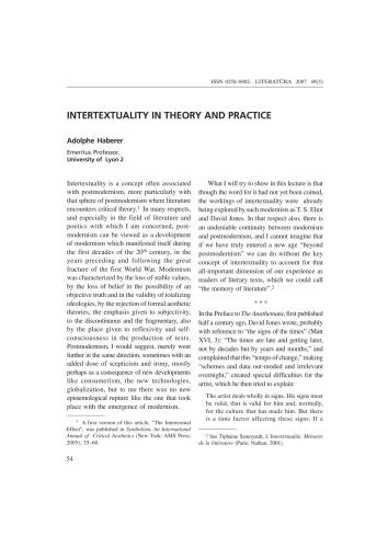 هدف این مقاله نشان دادن این است که اگرچه واژه آن هنوز ابداع نشده بود، اما کارکردهای بینامتنی قبلاً توسط چنین مدرنیستهایی مورد بررسی قرار گرفته بود. به عنوان تی اس الیوت و دیوید جونز. از این نظر نیز، تداوم انکارناپذیری بین مدرنیسم و پست مدرنیسم وجود دارد، و اگر ما واقعاً وارد عصر جدیدی فراتر از پست مدرنیسم شده باشیم، میتوانیم بدون مفهوم کلیدی بینامتنیت، آن بعد بسیار مهم تجربه خود را به عنوان خوانندگان ادبی توضیح دهیم. متن هایی که می توان آن ها را حافظه ادبیات نامید