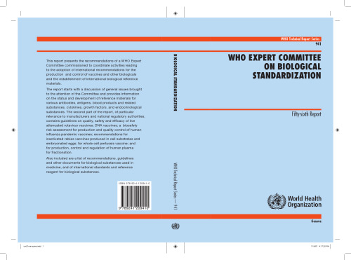 این گزارش توصیه‌های یک کمیته تخصصی WHO را ارائه می‌کند که مأمور هماهنگی فعالیت‌هایی است که منجر به پذیرش توصیه‌های بین‌المللی برای اطمینان از کیفیت، ایمنی و اثربخشی واکسن‌ها، فرآورده‌های خونی و سایر داروهای بیولوژیکی و ایجاد استانداردهای مرجع بین‌المللی بیولوژیکی برای این محصولات می‌شود. و دستگاه های تشخیصی مرتبط این گزارش که مربوط به تولیدکنندگان و مقامات ملی نظارتی است، با بحث در مورد مسائل کلی که مورد توجه کمیته قرار گرفته است آغاز می شود. بخش دوم گزارش حاوی مشخصات مکتوب است که انتظارات نظارتی بین المللی را برای محصولات زیر تعیین می کند. واکسن های DNA، واکسن سیاه سرفه (کل سلولی)، پلاسما (انسان) برای شکنش، واکسن هاری، و واکسن روتاویروس. این گزارش همچنین ارزیابی خطر را ارائه می‌کند و شرایطی را برای تولید ایمن واکسن‌های آنفلوانزای سویه همه‌گیر تعریف می‌کند. بخش سوم گزارش اطلاعاتی در مورد وضعیت و توسعه مواد مرجع بین‌المللی برای آنتی‌بادی‌های مختلف، آنتی‌ژن‌ها، فرآورده‌های خونی و مواد مرتبط و دستگاه‌های تشخیص آزمایشگاهی ارائه می‌دهد.