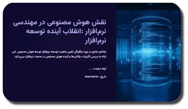خرید و دانلود نسخه کامل قالب پاورپوینت نقش هوش مصنوعی در مهندسی نرم افزار – انقلاب آینده توسعه نرم‌افزار (۶۰ اسلاید حرفه‌ای)